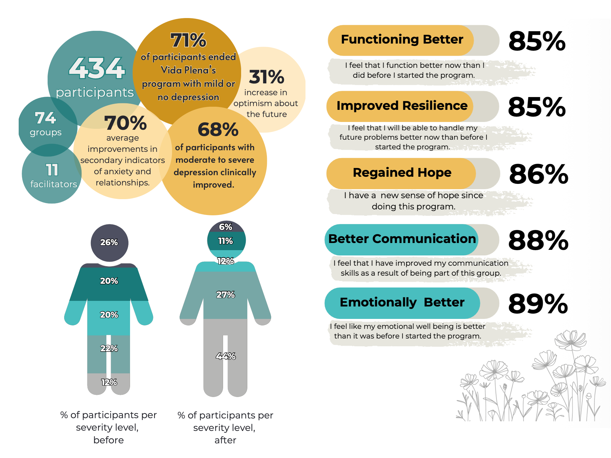 As the first organization to implement WHO-recommended group interpersonal therapy for depression in Latin America, we are excited that our pilot showed positive outcomes in all key indicators.